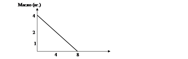 Предположим, что в нашем распоряжении имеется 4000 рублей, которые мы потратим на покупку масла и сыра. Допустим, что цена масла составляет 100 рублей за 1 кг., а сыра – 500 рублей. Тогда мы можем сначала заполнить таблицу с комбинациями масла и сыра, а затем построить по ней бюджетную линию, то есть все возможные варианты сочетания покупок масла и сыра, сумма затрат которых равна 4000 рублей.