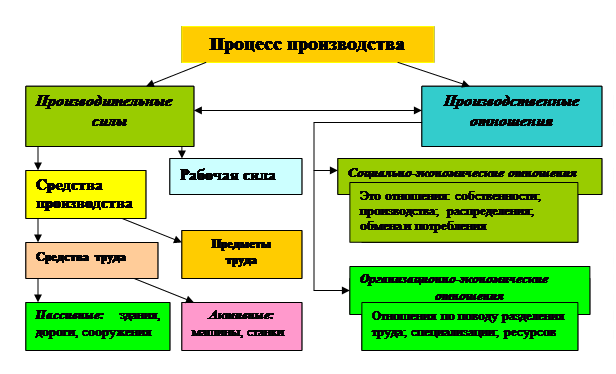 Схематично процесс производства можно представить как совокупность производительных сил и производственных отношений (рис.11.).