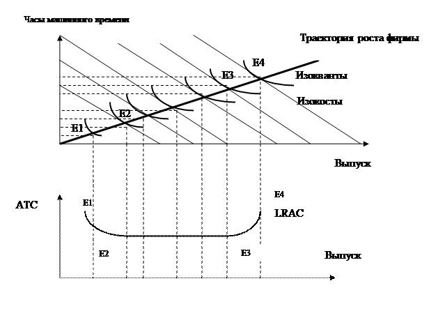 Рис.16. Построение траектории роста фирмы и долгосрочная кривая издержек LRAC