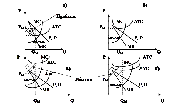 Рис.33. Режимы работы фирмы-монополиста в краткосрочном периоде:
