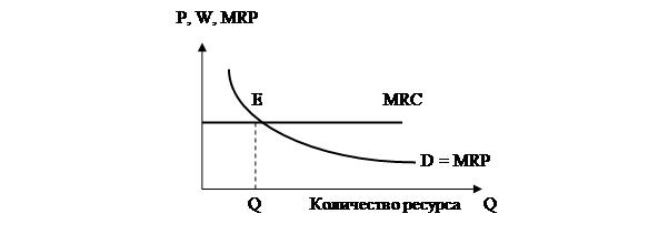 Вспомним, что выпуск продукции с максимальной прибылью для конкурентной фирмы осуществляется тогда, когда PQ = MC, где PQ является ценой готовой продукции. Если посмотреть на это правило с точки зрения затрат на ресурсы, то для максимизации прибыли должно выполняться равенство W = PL =MRPL, где PL – это цена ресурса. Или MRP ≥ MRC = W.