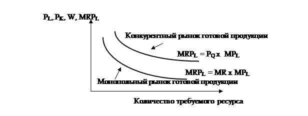 Рис. 9.5. Кривая предельного продукта в денежном выражении в условиях совершенной конкуренции и монопольной власти