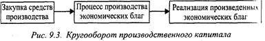 В процессе воспроизводства производственный капитал на ходится в постоянном движении, совершая кругооборот трех стадий (рис. 9.3).