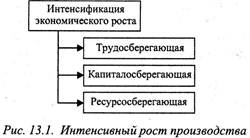 Интенсивный рост производства происходит за счет более полного использования ресурсного потенциала, повышения произ-иодительности труда, отдачи основных производственных фон-ton, эффективности использования оборотных средств (рис. 13.1).