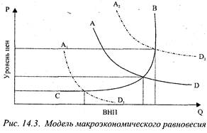 Рис. 14.5. Макроэкономическое равновесие (модель кейнсианской школы):