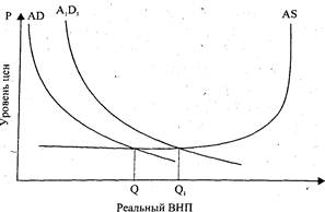Q — объем ВНП при исходном совокупном спросе;