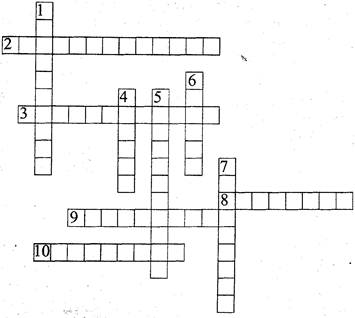 По горизонтали. 2. Повышение металлического содержания денежной единицы или повышение курса бумажных знаков по отношению к металлу или к иностранной валюте. 3. Состояние несбалансированности производства и потребления в общественном масштабе. 8. Нарушение макроэкономического равновесия, которое обеспечивает стабильность денежного обращения и придает всему народно-хозяйственному организму большую жизненную силу. 9. Русский экономист, который обнаружил причины циклических движений не в сфере обраще-
