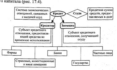 Кредит (от лат. creditum — «ссуда», «долг»; credere — «верить») — ссуда в денежной или товарной форме, предоставляемая заемщику на условиях возвратности, срочности, обеспеченности и платности. Основа кредита — появление нременно свободных денжных средств в процессе кругооборо-i а капитала (рис. 17.4).