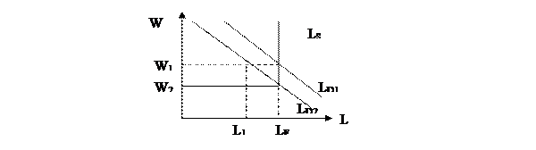 Из графика следует, что падение спроса на труд сместит кривую Ld1 в положение Ld2.