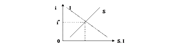 Например, случилось так, что S < I. Тогда на рынке капитала усилится конкуренция инвесторов за свободные кредитные ресурсы, что вызовет повышение ставки процента. Это приведет к пересмотру объемов планируемых сбережений в сторону повышения, а инвестиций – в сторону понижения до тех пор, пока не установится такая процентная ставка, при которой они совпадут. При S > I образуются свободные кредитные ресурсы, что вызовет понижение i до равновесного значения.