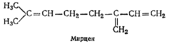 Типичный представитель алифатических терпенов мирцен, содержащийся в ряде эфирных масел. Особенно большое его количество (до 52%) содержится в эфирном масле сумаха ‑ ценного дубильного растения.