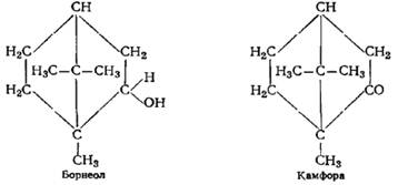 Среди бициклических терпенов наибольшее значение имеют пинен и камфен, а также их кислородные производные ‑ борнеол и камфора.