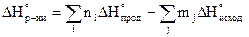 - энтальпии образования (разложения) сложного вещества при стандартных условиях.