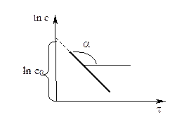 ln c0 – ln c = k×t, ln c = ln c0 - k×t, - соответствует уравнению прямой: y = b + ax.
