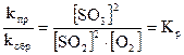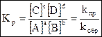 Констаната равновесия обратимой химической реакции равна отношению произведения концентраций продуктов реакции, взятых в некоторых степенях, к произведению концентраций исходных веществ в некоторых степнях.