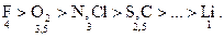 Сродство к электрону характеризует окисляющие свойства элемента, т. е. чем больше сродство к электрону, тем более сильным окислителем является элемент. Самым сильным окислителем является F (фтор):