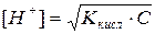Расчет концентрации ионов водорода в растворе слабой кислоты.