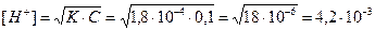 pH = - lg 4,2×10-3 = 2,38 – кислая среда.