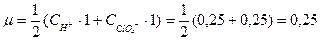 аH+ = f×[H+] = 0,25×0,681 = 0,17