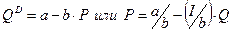 Если функция носит линейный характер, то графически кривая спроса представлена в виде наклонной прямой линии (рис. 4) и уравнение кривой будет представлено в виде: