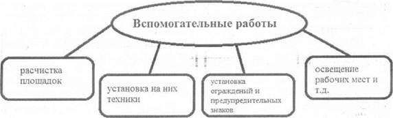 Вспомогательные работы связаны с инженерной и организационной подготовкой участка спасательных работ и рабочих мест.