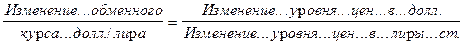 Изменение соотношения внутренних цен к ценам экспортируемых товаров в два разных центра отражается в изменении обменного курса соответствующих валют.