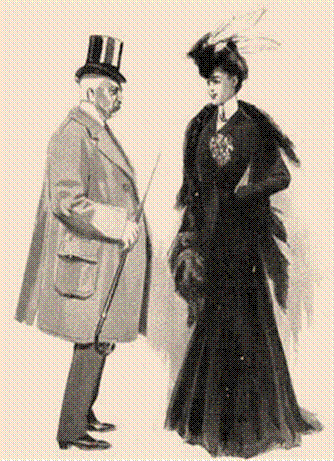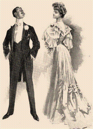 Первое десятилетие XX века все еще тесно связано с модой ушедшего столетия. С одной стороны, этот период получил название «бель эпок», воплощение идей стиля модерн. В России это время именовали Серебряным веком - расцветом живописи, архитектуры и поэзии. И мода начала XX века являлась отражением идеалов «прекрасной эпохи». Основу силуэта задавал образ женщины - цветка, которой чужды земные тревоги, заботы и вообще физическая работа. Художники изображали женщину в образе русалки, нимфы, дриады, но, ни в коем случае не как обычного человека. Женщины того периода не должны были просто ходить по земле, они должны были парить, быть загадочными и таинственными, эфемерными и недостижимыми. Модный силуэт, создающий такой образ, состоял из непомерно утянутой «осиной талии», расклешенной колоколообразной юбки, напоминающей бутон лилии, и трена (шлейфа), создающего иллюзию морской пены.