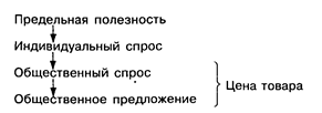 В соответствии с этой теорией стоимость всегда относительна. По Вальрасу, она определяется сопоставлением интенсивности конкретной потребности в товаре с издержками его производства, при этом предполагается, что технологические возможности производства заданы и известны. Такое сопоставление осуществляется не по отдельности для каждого товара, но в целом для всех товаров в данной хозяйственной системе, т.е. потребность в данном товаре и соответственно спрос на него зависят также от наличия других товаров. Издержки производства данного товара, определяющие условия его предложения, зависят не только от технологии его собственного производства, но и от всех альтернативных возможностей использования потребляемых ресурсов. Следовательно, при данном уровне развития производительных сил стоимость определяется в точке равновесия между предельной общественной полезностью данного количества товара (с учетом воздействия на нее того или иного количества всех остальных товаров) и предельными общественными издержками производства этого количества (с учетом альтернативных возможностей использования потребляемых ресурсов), т.е. выступает как равенство спроса и предложения не по одному данному товару, а по всем товарам и услугам в экономике в целом.