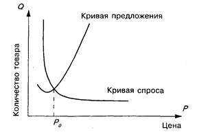 Маршалл полагал, что спрос и предложение равнозначны в определении цены. При анализе цены он рассматривал представительную фирму, т.е. фирму со средними отраслевыми характеристиками. По мнению Маршалла, существует совершенная конкуренция, т.е. конкуренция, "не испорченная" ни вмешательством государства, ни монополией. Он утверждал, что в этих условиях с ростом цены предложение товаров растет, а платежеспособный спрос падает. Это положение он проиллюстрировал графически, изобразив так называемый "маршаллианский крест" (рис. 5). На вертикальной оси Q показано количество товара в натуральных единицах, Р — цена, Р0 — равновесная цена. Этот график — пример типичного устойчивого равновесия для товара, подчиняющегося закону убывающей отдачи. При постоянной отдаче цена предложения одинакова для всех количеств товара. "Когда спрос и предложение пребывают в равновесии, — пишет Маршалл, — количество товара, производимого в единицу времени, можно назвать равновесным количеством, а цену, по которой он продается, — равновесной ценой" 15.