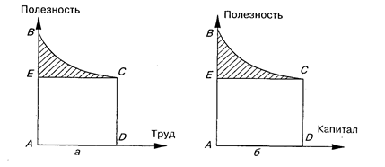 Рис. 6. Предельные продукты труда (а) и капитала (б)