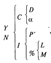 где Y— национальный доход; N — занятость; С — потребительский спрос; I — инвестиционный спрос; D — доходы; α— склонность к потреблению; Р' — предельная эффективность капитала; % — норма процента; L — предпочтение ликвидности; М — масса денег в обращении.