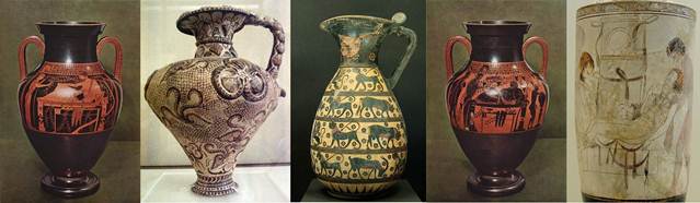 Со второй половины VII в. до начала V в. до н. э. чернофигурная вазопись развивается в самостоятельный стиль украшения керамики. Всё чаще на изображениях стали появляться человеческие фигуры. Композиционные схемы также подверглись изменениям. Наиболее популярными мотивами изображений на вазах становятся пиршества, сражения, мифологические сцены, повествующие о жизни Геракла и о Троянской войне.
