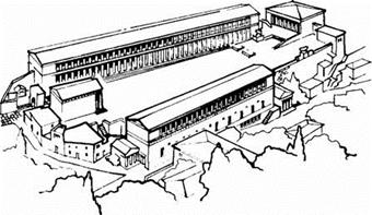 Первый город (Рис.136), так называемый «Квадратный Рим», связанный еще с Ромулом, был заложен на Палатинском холме, подножие его считалось помериумом – внешней границей, отделявшей город от сельской местности. Город выполнял роль религиозного центра: сюда не разрешали проносить оружие, хоронить или сжигать покойников. Также была разграничена власть: в городе она была гражданской, а за его пределами – военной.