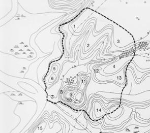 1.Квиринал. 2.Виминал. 3.Циспий. 4.Эсквилин. 5.Аркс. 6.Капитолий. 7.Бычий форум. 8.Хижина Ромула. 9.Палатин. 10.Гермал. 11.Велия. 12.Фагутал. 13.Оппий. 14.Целий. 15.Авентин.