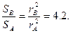 Планетарная туманность B по общей яркости превосходит планетарную туманность A в 2.512 раза (так как ее блеск на 1m меньше). Но размеры планетарной туманности B больше. Определим соотношение видимых площадей туманностей: