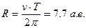 что составляет 23 км/c. Максимальное расхождение линий наблюдается дважды за орбитальный период T, который, таким образом, составляет 10 лет. Радиус орбиты каждой из звезд составляет
