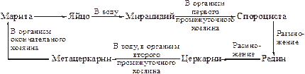 Одна и та же особь является и окончательным, и промежуточным хозяином. Самки живородящие.