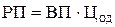 В курсової роботи допускається, що вартість товарної продукції (ТП) дорівнює реалізованої продукції (РП), тобто продукція, що випускається підприємством за рік реалізується у повному обсязі (виконується умова ТП = РП). В свою чергу обсяг реалізованої продукції (РП) розраховується за формулою:
