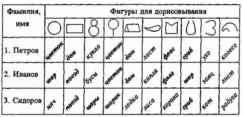 Перед обследованием экспериментатор говорит ребенку: «Сейчас ты будешь дорисовывать волшебные фигурки. Волшебные они потому, что каждую фигурку можно дорисовать так, что получится какая-нибудь картинка, любая, какую ты захочешь».