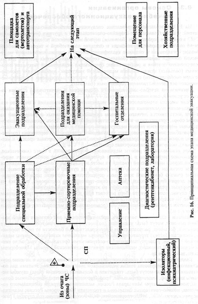 В состав каждого этапа медицинской эвакуации также входят: управление, аптека, хозяйственные подразделения и т.д. (рис. 16).