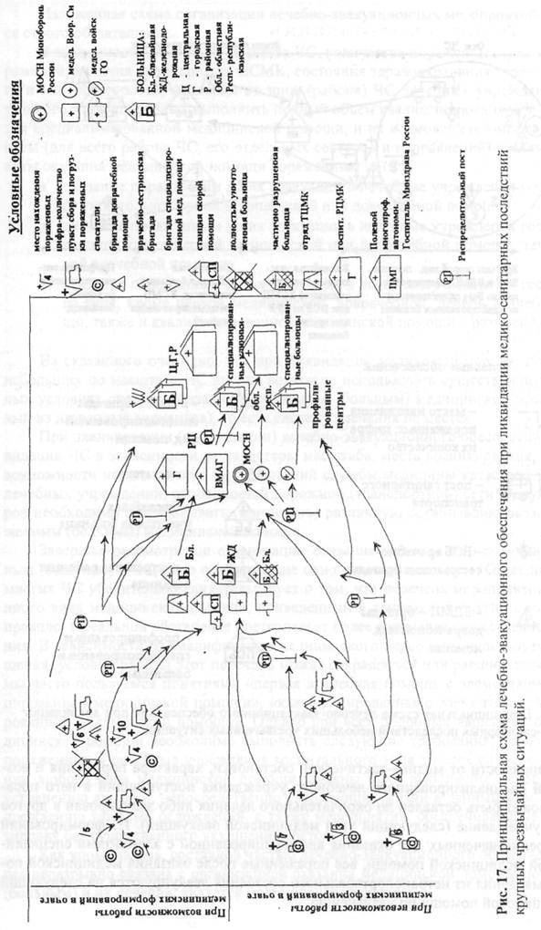 При крупномасштабной ЧС в системе лечебно-эвакуационного обеспечения пораженных может создаваться несколько эвакуационных направлений, как это имело место при ликвидации последствий землетрясений в Ашхабаде, Армении и при других стихийных бедствиях и катастрофах.