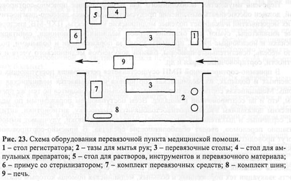 Перевязочная ПМП развертывается в палатке, помещении, укрытиях или в автоперевязочной (рис. 23).