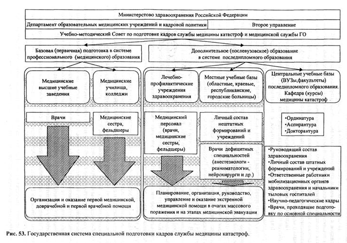Подготовка врачей, фельдшеров, медицинских сестер по медицине катастроф в Российской Федерации является государственной, обязательной и непрерывной (рис. 53).