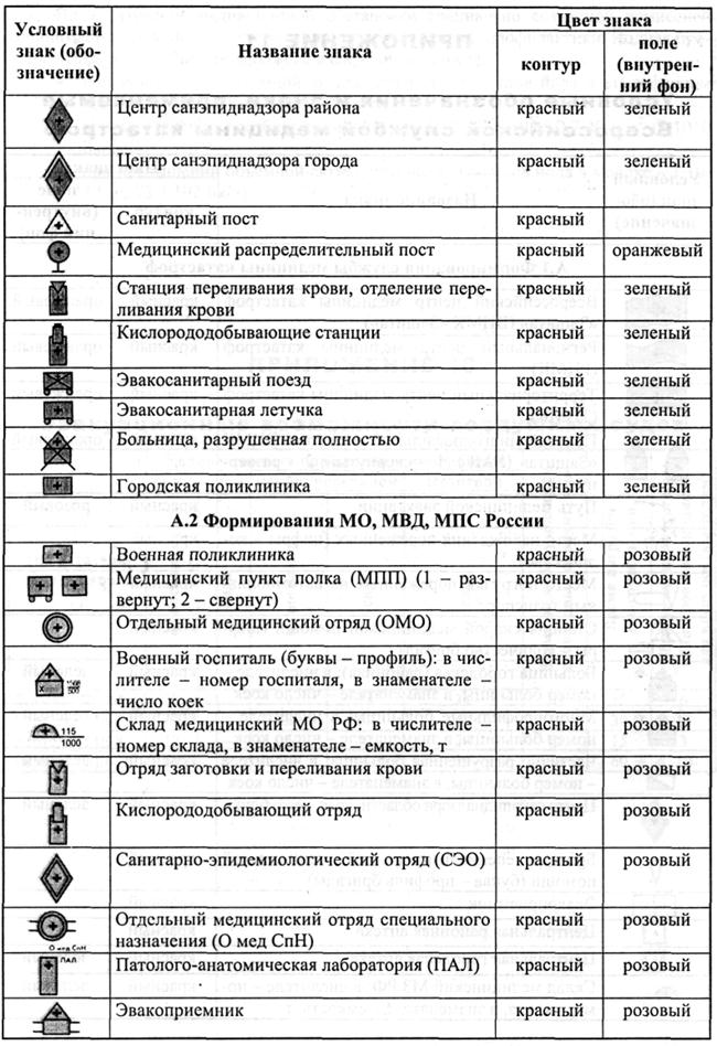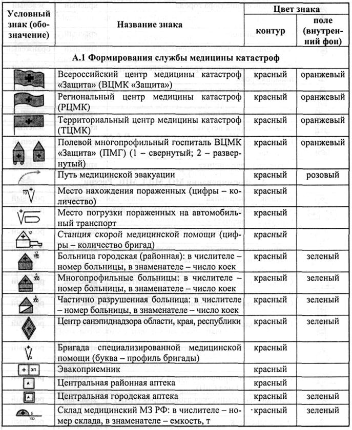 Условные обозначения и знаки, применяемые Всероссийской службой медицины катастроф