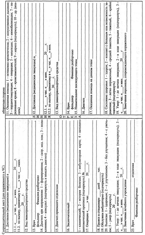 Сопроводительный лист для пораженного в ЧС