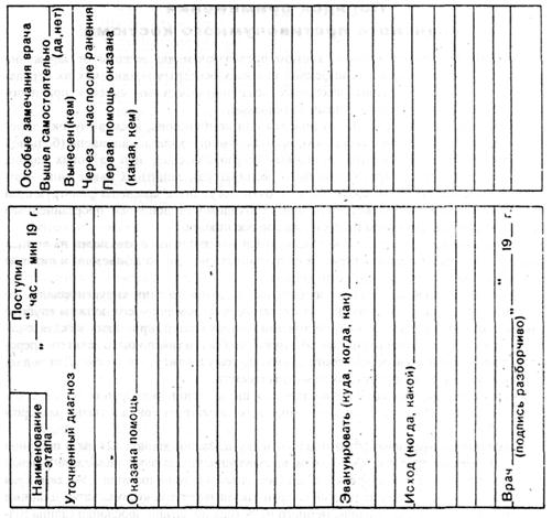 Первичная медицинская карточка ГО (Оборотная сторона)