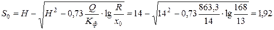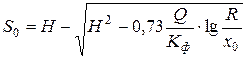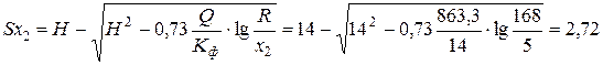 Вычислим понижение уровня грунтовых вод под центром фундамента при В /2=11 м на расстоянии х 0=13 м от скважины: