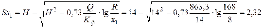 Задаемся расстояниями х 1=8 м, х 2=5 м, х 3=2 м и вычисляем понижение уровня воды в точках, расположенных на этих расстояниях от скважины: