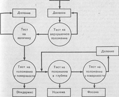 Уже на первой фазе роста — фазе делепия — клетки, находящиеся в нижней части меристемы, начинают дифференцироваться. В них постепенно накапливаются физиологические, а затем и морфологические различия. Эти различия обусловлены местоположением клетки, взаимодействием ее с другими клетками, а также той генетической программой, которая в нее вложена. Вопрос о причинах дифференциации клеток — один из наиболее сложных вопросов биологии. Все клетки данного организма обладают одинаковым геномом, а следовательно, все клетки обладают и одинаковыми потенциальными возможностями (тогипотентны). Однако эти потенциальные возможности проявляются по-разному. Тотипотентность растительных клеток хорошо доказана на культуре изолированных тканей.