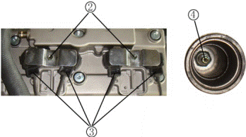 (4) По отдельности снимите 4 колпачка свечей зажигания ③, чтобы можно было видеть свечи зажигания ④.